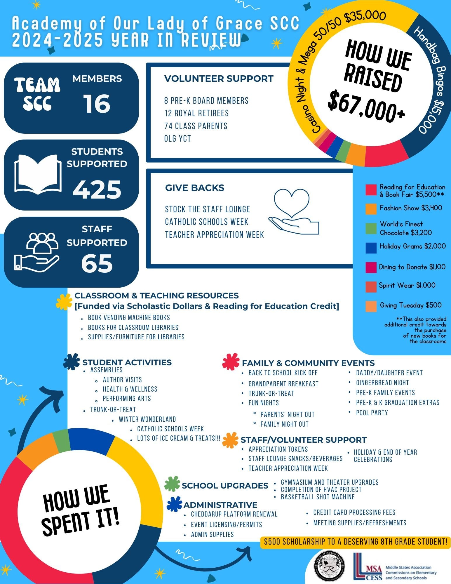 Like most private schools, the Academy of Our Lady of Grace cannot rely on tuition alone to cover operating costs. The SCC provides vital support in maintaining the school building and enhancing educational opportunities for all students.